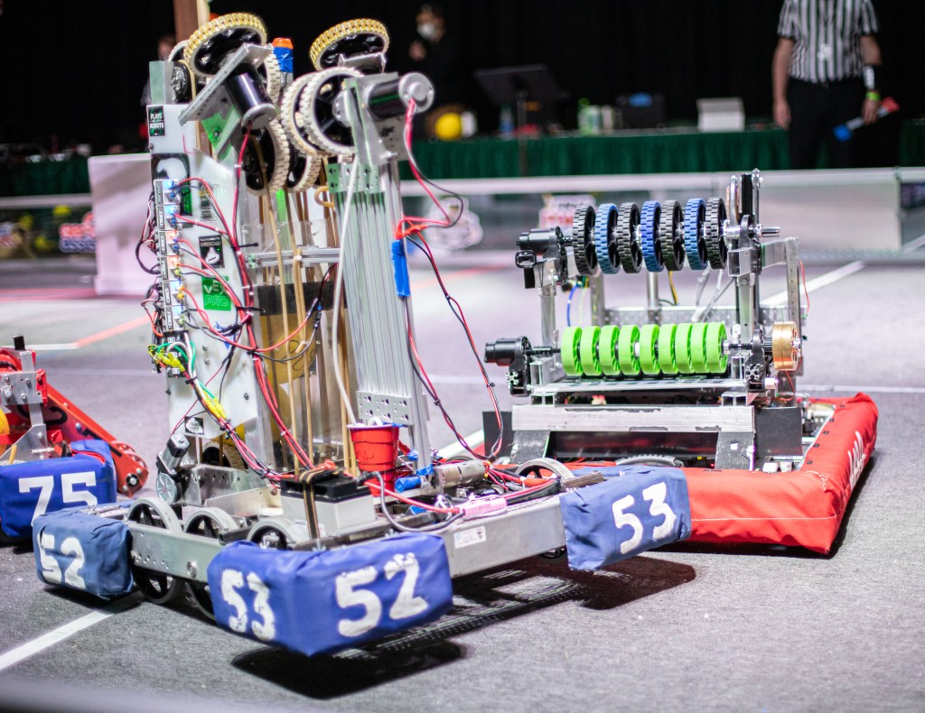 Overall, We progressed through the Final brackets all the way to the end, and ultimately took home the 2nd place alliance trophy. We had a few mishaps on our side, where our Climber rope go wrapped around a bolt and wouldn’t allow us to deploy fully, and another time our robot ended up getting bashed around a bit too hard, and found our climber deployed too soon. That deploy ended up costing us foul points which hurt our end game total.