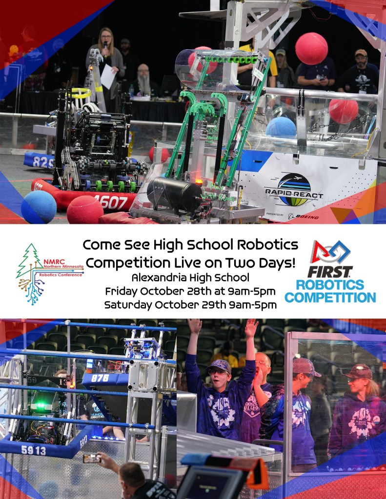 The Northern Minnesota Robotics Conference championship and open are coming up this weekend on the 28th and 29th of October! We look forward to bringing out the robot again but with an added bonus of bringing some new friends and teammates with to competition!