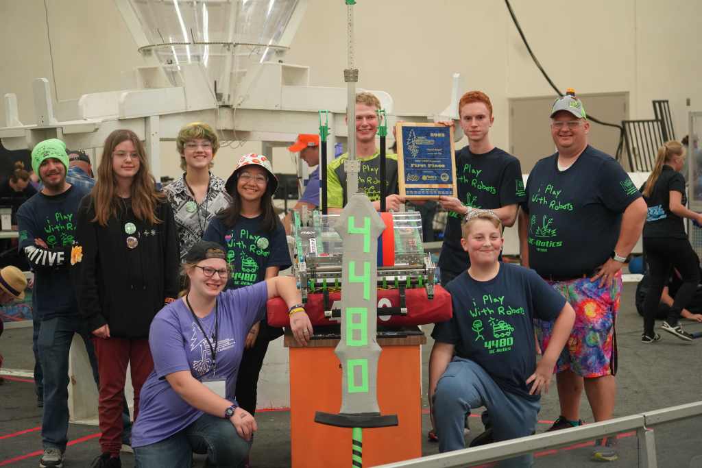 At the conclusion of the Qualification matches, Upsala was chosen in the first round to be a part of the number 4 seed alliance for final playoffs. The alliance consisted of 5913 – Pequot Lakes -Patriotics, 4480 – Upsala- UC-Botics, 8878 – Ashby – Arrowbots. With many tough matches ahead, and being the underdog, Our alliance managed to perform at peak performance and went completely Undefeated through the Playoff Tournament and secured First Place!